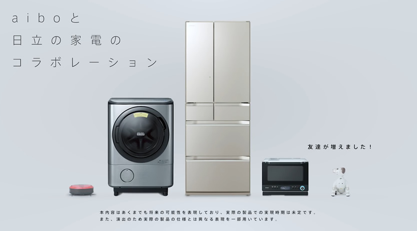 aiboのソフトウェアAPIをご活用いただくことで、aiboと日立様のコネクテッド家電である、電子レンジ、冷蔵庫、洗濯機、ロボット掃除機が友達になり、日常生活を楽しく演出する様子を多くのお客様にご体感いただきました。
