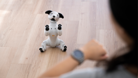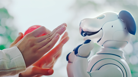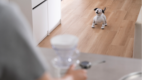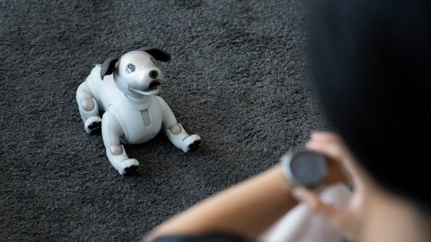 たとえば、腕元からいつでもどこでもaiboとつながります。